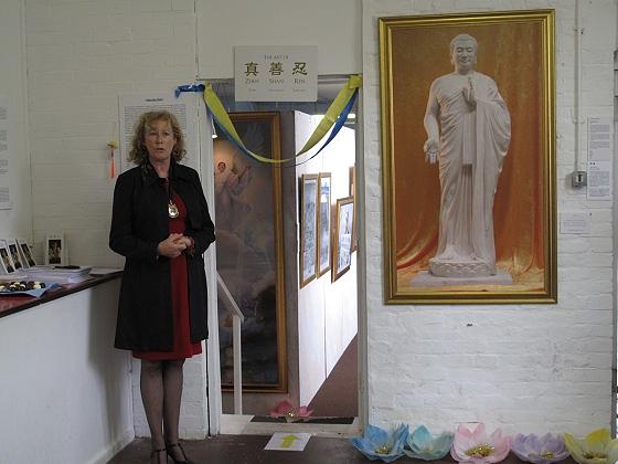 Bernardine Fiddimore je službeno otvorila izložbu Istinitosti – Dobrodušnosti – Tolerancije u Ryeu. Izjavila je: „Prilikom otvaranja ove dirljive izložbe, željela bih pozdraviti svaku osobu na ovom svijetu koja ima hrabrosti zauzeti se za svoja uvjerenja, za ljudska prava i patnju. Čvrsto vjerujem da će kineski narod izaći iz tame i ući u jedan istinski blještav svijet. Patnja znači nadu za budućnost.“