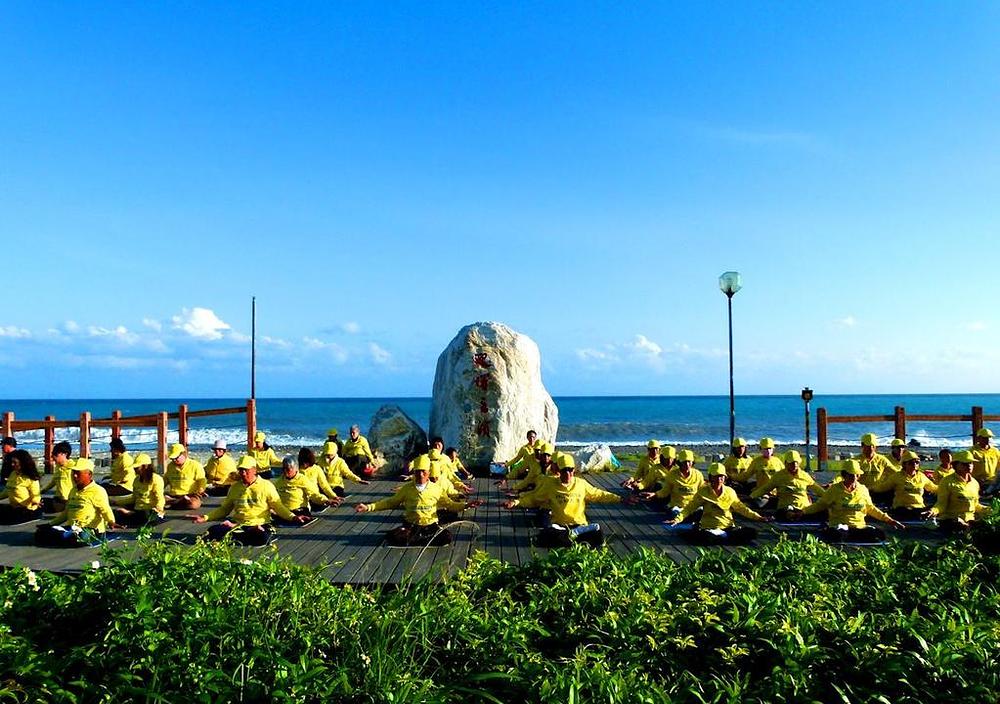 Prakticiranje Falun Gong vježbi u parku na morskoj obali u Taitungu