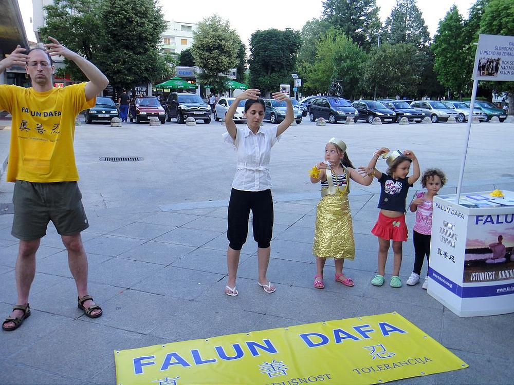 Poslijepodne istog dana, održan je info dan u Rovinju. Bilo je puno ljudi i turista koji su uzimali letke i lotosove cvjetove. I u Rovinju su djeca bila izrazito zainteresirana naučiti vježbe. Dvije djevojčice su meditirale zajedno s praktikantima u petoj vježbi. Djeca su dolazila izravno pitati praktikante da im pokažu vježbe. Jedan dječak je rekao: „Zanima me samo peta vježba. Pokažite mi petu vježbu.“ Jedan dječak je došao s grupom prijatelja i željno htio čuti sve o praksi i progonu. Tijekom objašnjavanja neki od prijatelja su ga pokušavali odvući, no on je ozbiljno rekao da želi čuti i pažljivo saslušao sve, a time su i njegovi prijatelji sve čuli. Rekao da je da ga zanima Falun Gong, uzeo je letak, nakon toga se zahvalio i otišli su dalje. Mnogi ljudi, osobito turisti, bi se zaustavljali, gledali praktikante kako rade vježbe i, želeći znati više o Falun Dafa, uzeli bi letke.