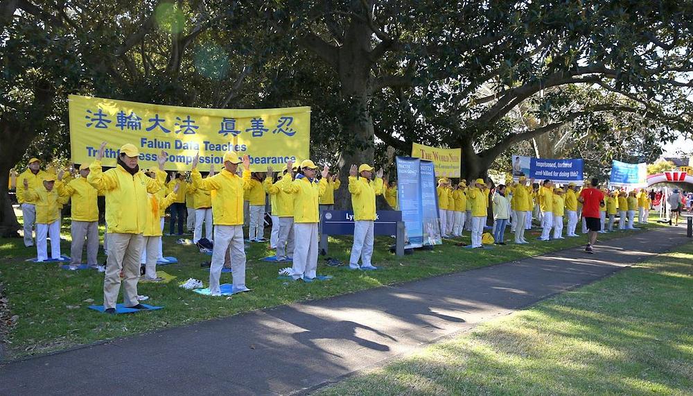 Praktikanti su svoj štand postavili na trasi trke i demonstrirali su Falun Gong vježbe, dijelili informativne materijale, predstavljali praksu, i prikupljali potpise na peticiju kojom se poziva vlada Australije da preduzme akciju da se u Kini zaustavi ubijanje praktikanata uz suglasnost države zbog uzimanja njihovih organa.