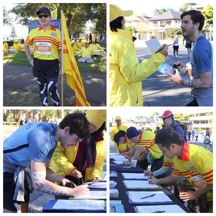 Mnogi su trkači razgovarali sa praktikantima, a neki su od njih i naučili vježbe. Za tri sata je više od 100 trkača potpisalo peticiju kojom se od australijskih političara traži da zabrane transplantacijski turizam i da vlada istraži zločine prisilne žetve organa u Kini.