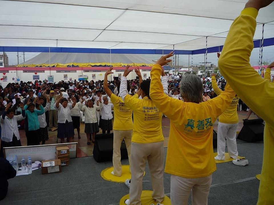 Ministarstvo zdravlja Perua je pozvalo lokalne praktikante Falun Gonga da stanovnicima grada Comasa predstave pet Falun Gong vježbi. Ovaj je društveni događaj zajednički bio organizovan 25. avgusta 2017. od strane Ministarstva zdravlja i grada Comasa, u Gradskom centru za stare osobe grada Comasa. Vlasti iz ministarstva znaju šta je Falun Gong i u više su navrata razgovarali sa praktikantima o mogućnosti organizacije sličnog događaja.