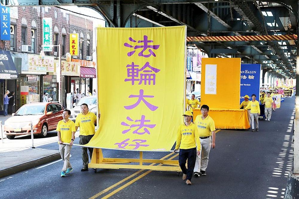 Više od 300 praktikanata Falun Gonga učestvovalo je na maršu 17. septembra 2017. u Bensonhurstu, drugoj po veličini kineskoj četvrti u Brooklynu. Marš je predvodio Tian Guo Marching Band, a iza njih su slijedile sekcije demonstracije vježbi, splav, tim barjaktara i dobošari.