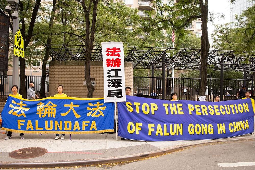 Praktikanti Falun Gonga su, od popodneva 20. septembra do večeri 22. septembra 2017. godine, odlazili pred stalnu misiju Narodne Republike Kine pri UN na 1. Aveniji između 34. i 35. ulice na Manhattanu. Nosili su transparente na kojim je pisalo: "Falun Dafa je divan", "Prekinite progon Falun Gonga", "Dovedite Jiang Zemina pred lice pravde", i tako dalje.