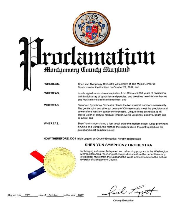 Shen Yun Symphony Orchestra je izveo završni nastup za ovu sezonu u Strathmore Music Center u oblasti Washingtonu D.C. 22. oktobra 2017. godine. Tri bisa i stojeće ovacije su zaključile koncertnu turneju ove kompanije za 2017. godinu.