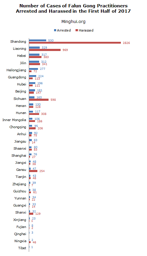 Još 4.278 slučajeva praktikanata Falun Gonga uhapšenih ili zlostavljanih je prijavljeno u junu mjesecu 2017. godine što ukupno čini zbir od 10.869 slučajeva u prvoj polovini 2017. godine. Od ovog ukupnog broja praktikanata, 3.660 je uhapšeno, dok je zlostavljano 7.209 ljudi.