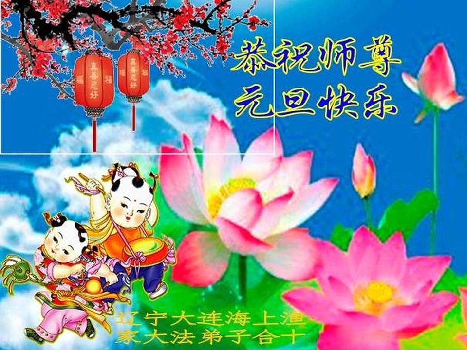 Falun Dafa praktikanti iz grada Daliana s poštovanjem žele Učitelju Li Hongzhiju Sretnu Novu Godinu (16 čestitki)
