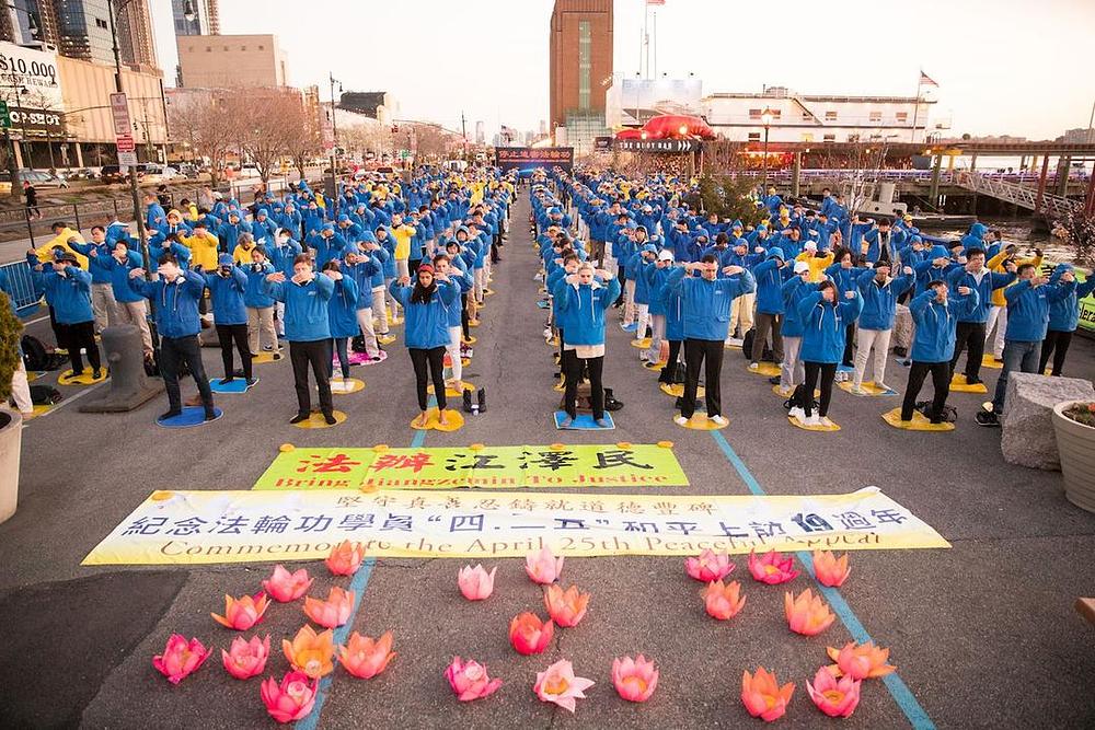 Oko 1.000 se praktikanata okupilo ispred Kineskog konzulata u New Yorku kasno popodne 22. aprila, na bdijenju uz svijeće, u znak komemoracije praktikantima koji su umrli kao rezultat progona u Kini. Prema informacijama koje je sakupila web stranica Minghui, najmanje je 4.200 praktikanta izgubilo život, mnogi od njih zbog mučenja u policijskom pritvoru.