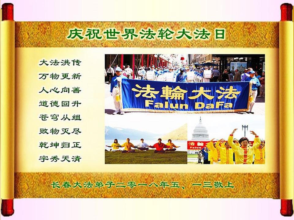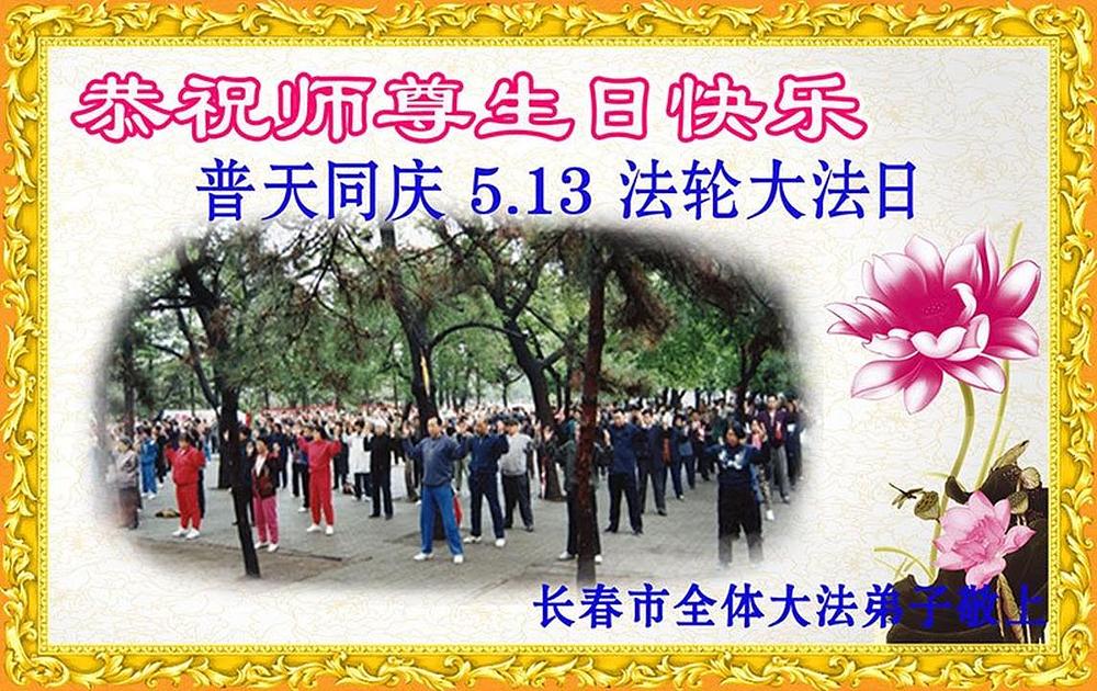 Falun Dafa praktikanti iz Changchuna slave Svjetski Falun Dafa dan i šalju rođendanske čestitke Učitelju Li Hongzhiju