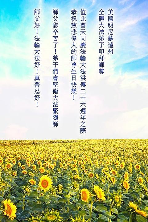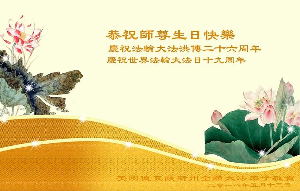 Na Minghui portal su pristigle brojne čestitke povodom Svjetskog Falun Dafa dana i Učiteljevog rođendana od praktikanata iz 23 grada u Sjedinjenim Američkim Državama i od praktikanata porijeklom iz Kine koji sada žive u Americi.