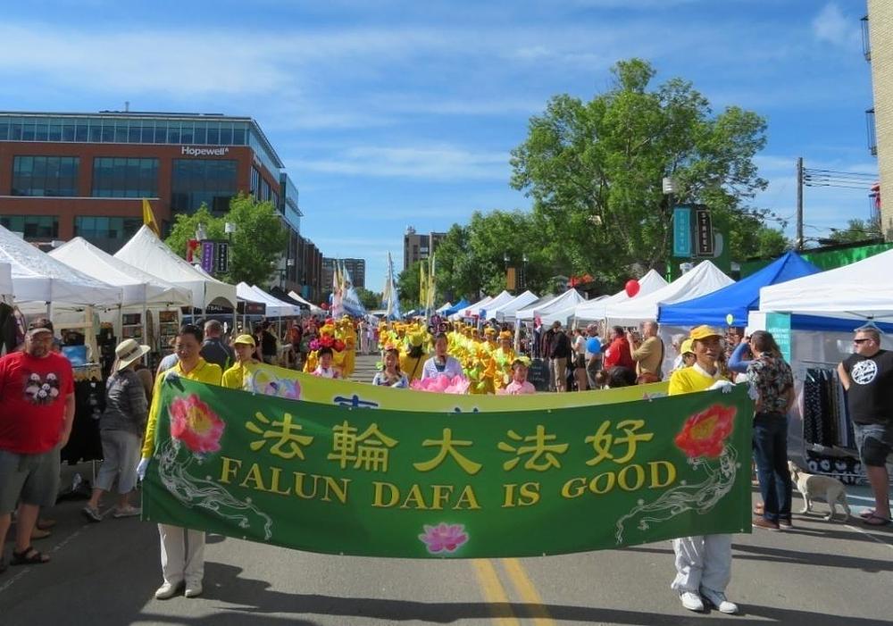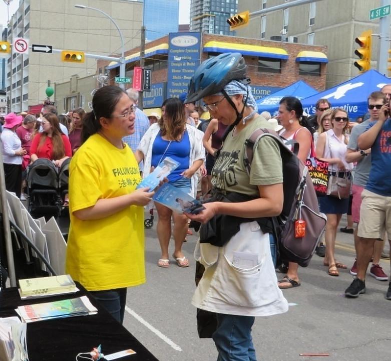 Praktikanti Falun Gonga su se pridružili proslavi godišnjeg Festivala jorgovana 3. juna 2018. godine. Stotine hiljada stanovnika Kalgarija svake godine prisustvuje ovom događaju, zajedno sa stotinama prodavaca.