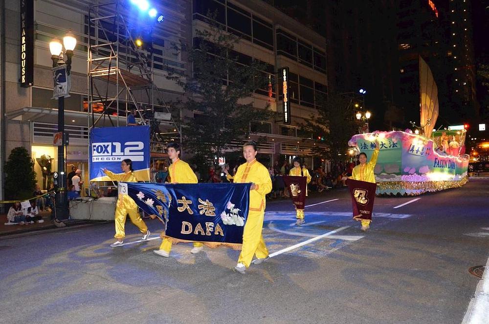 Više je od 100 grupa učestvovalo je na 42. paradi zvijezda u povodu Festivala ruža održanoj u Portlandu, 2. juna 2018. Pokretni splav koju su napravili Falun Dafa praktikanti osvojio je najvišu nagradu za učestvovanje - Sweepstakes-Best Illumination.