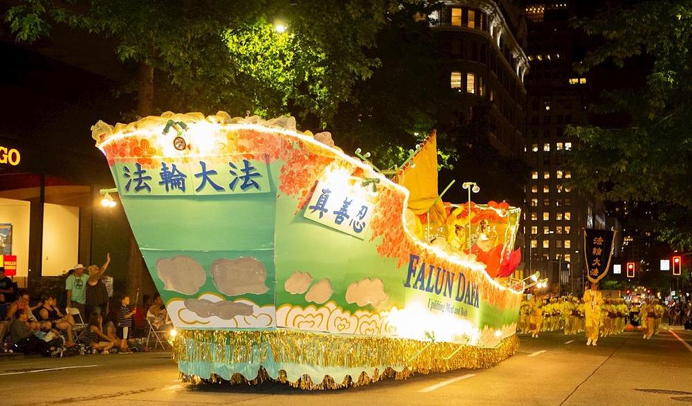 Kada je Falun Gong povorka prolazila pored bine, komentator iz KIRO 7 News je rekao: „Upravo započinjemo mitsko putovanje. Ovo je Falun Dafa! Falun Dafa je praksa za um i tijelo, koja slijedi principe „Istinitost-Dobrodušnost-Tolerancija." Stotinu miliona ljudi u više od 70 zemalja prakticira Falun Dafa. To je drevna praksa, ali je javnosti predstavljena 1992. godine."