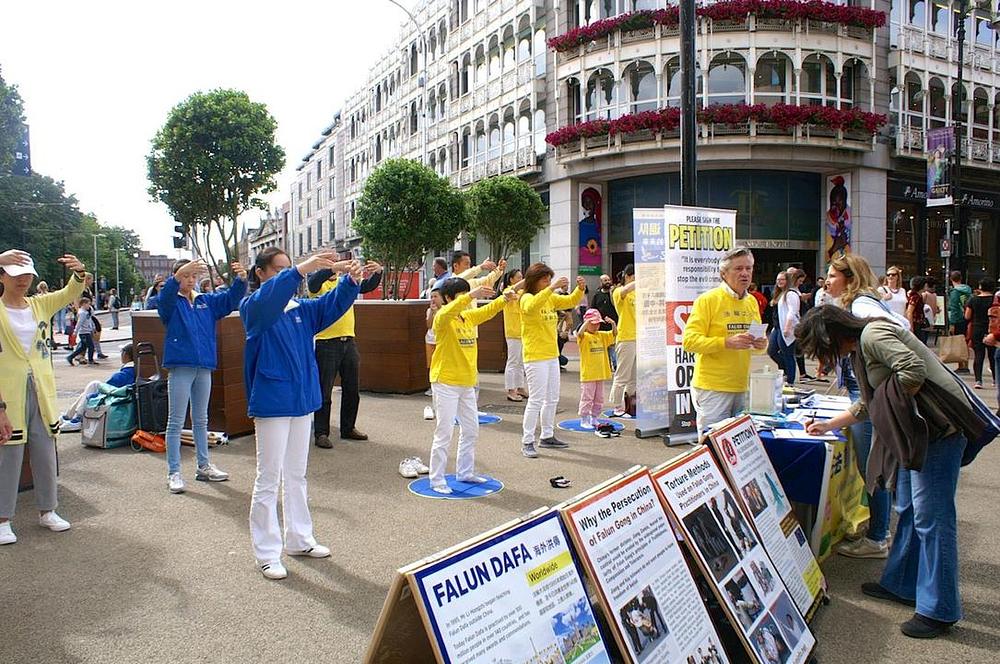 Falun Gong praktikanti iz Irske su se okupili u centru Dublina 18. avgusta 2018. godine kako bi radili vježbe. Mnogi su se ljudi zaustavili da gledaju i doznali više o Falun Gongu. Nakon što su saznali za postojanje progona ove tako miroljubive prakse od strane kineskog komunističkog režima, mnogi su potpisali peticiju podrške Falun Gongu.