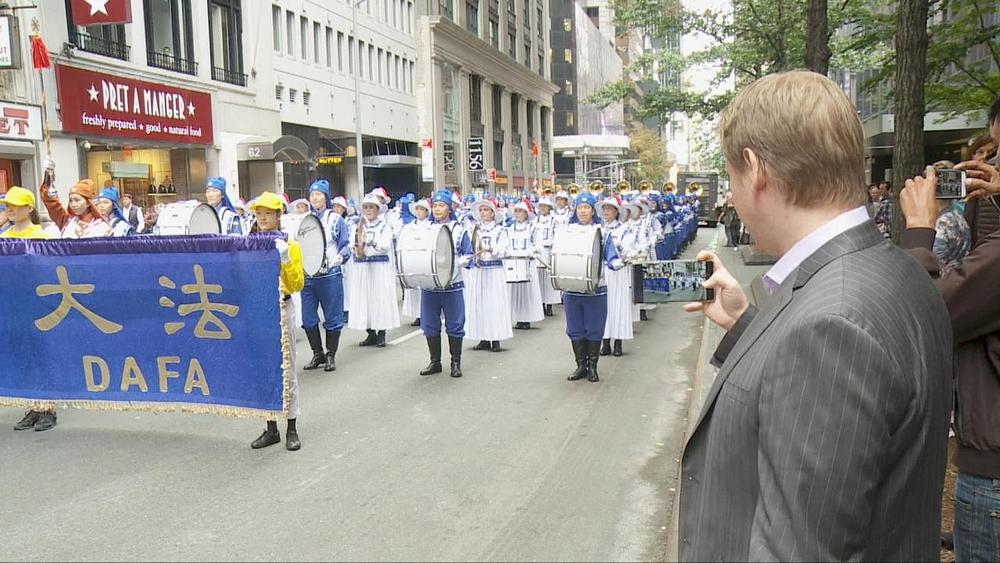 Gledaoci su snimali fotografije i video zapise nastupa Tian Guo Marching Banda usred odobravanja i aplauza. Gospođa Shi iz Brooklyna je gledala cijelu paradu s djecom. Za njenu kćerku je omiljeni dio parade bio nastup Falun Dafa Tian Guo Banda, jer je "Njihova muzika puna energije i sjajna!"