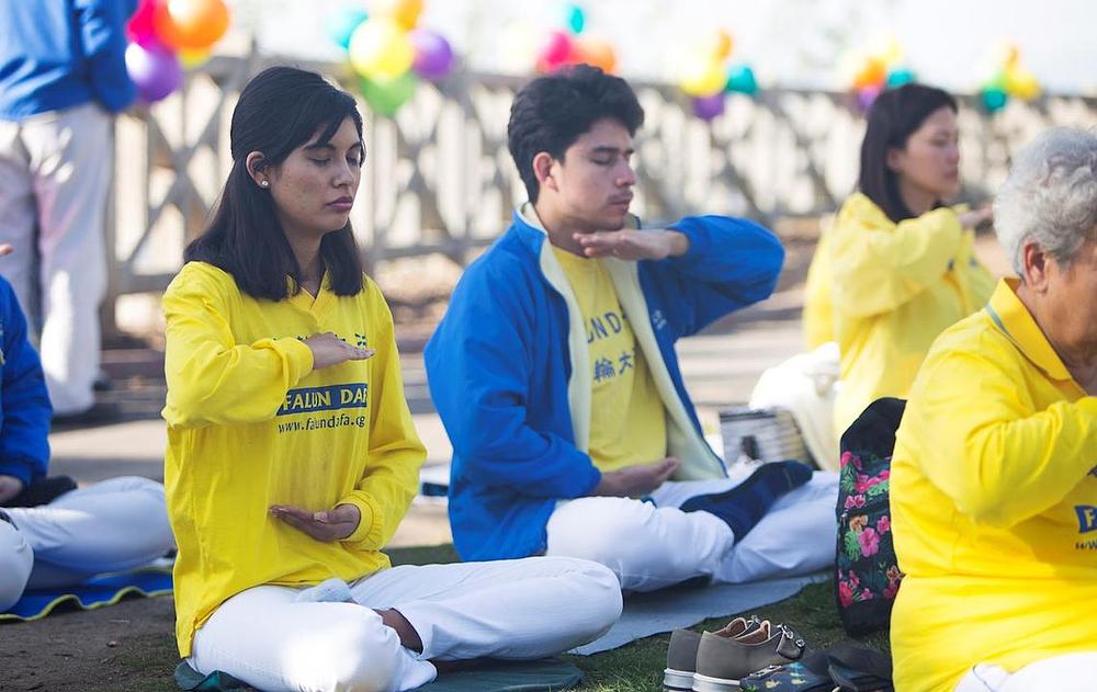 Sandra Reyes i njen muž Jesse Cesmit su se pridružili praktikantima u vježbanju. Rekli su da im je vježbanje pomoglo da se osjećaju ugodno i opušteno. Sandra je prvo planirala da stoji iza praktikanata i prati njihove pokrete, ali joj je jedna praktikantica ponudila prostirku i zamolila je da se pridruži praktikantima u prvom redu tako da može naučiti ispravne pokrete. Ona je rekla da je povrijedila kičmu u saobraćajnoj nesreći te da već neko vrijeme traži način istezanja i umanjivanje bolova. Rekla je da je uživala u vježbama: „Pokreti su lagani za učenje."