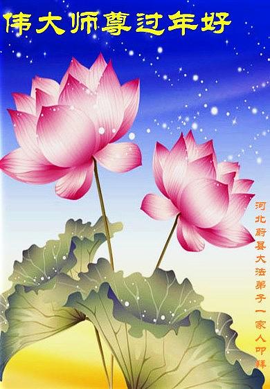 Dolaskom Kineske Nove Godine, Falun dafa praktikanti u Kini i diljem svijeta, kao i ne-praktikanti koji su saznali istinite činjenice o Falun Dafa, na Minghui šalju pozdrave, ručno izrađene čestitke i slične materijale koji sadrže njihove srdačne poruke. Žele poštovanom i dobrodušnom Učitelju Li Hongzhiu sretnu Kinesku Novu Godinu i izražavaju zahvalnost povodom Učiteljevog spasenja. Istovremeno, Falun Dafa praktikanti su izrazili da će istinsku pratiti Učiteljeva učenja, stalno se dobro kultivirati, dobro učiti Fa, gledati unutar sebe kada naiđu na probleme, da će dobro surađivati, pomoću Učitelju u Fa – ispravljanju i spasiti još više živih bića.