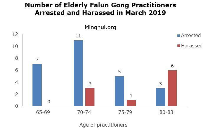 Od praktikanata uhapšenih u martu 2019. godine, 36 je imalo, ili bilo starije, od 65 godina. Među njima je maltretirano deset praktikanata, a najstariji je imao 83 godine.