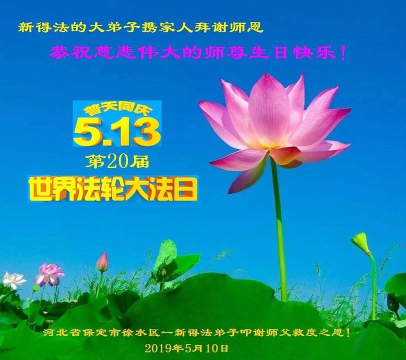 Jedna žena iz grada Zhangjiakou u pokrajini Hebei, napisala je da je cijela njena obitelj imala koristi, nakon što je ona počela prakticirati. “Ubrzo nakon što sam počela prakticirati, upala krajnika mojega sina se smanjila. Bili smo tako sretni jer mu više nisu bile potrebne injekcije i intravenske infuzije. Moj suprug je obolio od sklerodermije, koja je također nestala ubrzo nakon što sam postala praktikant.” Zbog ovih pozitivnih promjena, cijela njezina obitelj sada podržava njeno prakticiranje. "Tako smo sretni da slavimo Svjetski Falun Dafa dan i istinski želimo Učitelju Li-u sretan rođendan!"