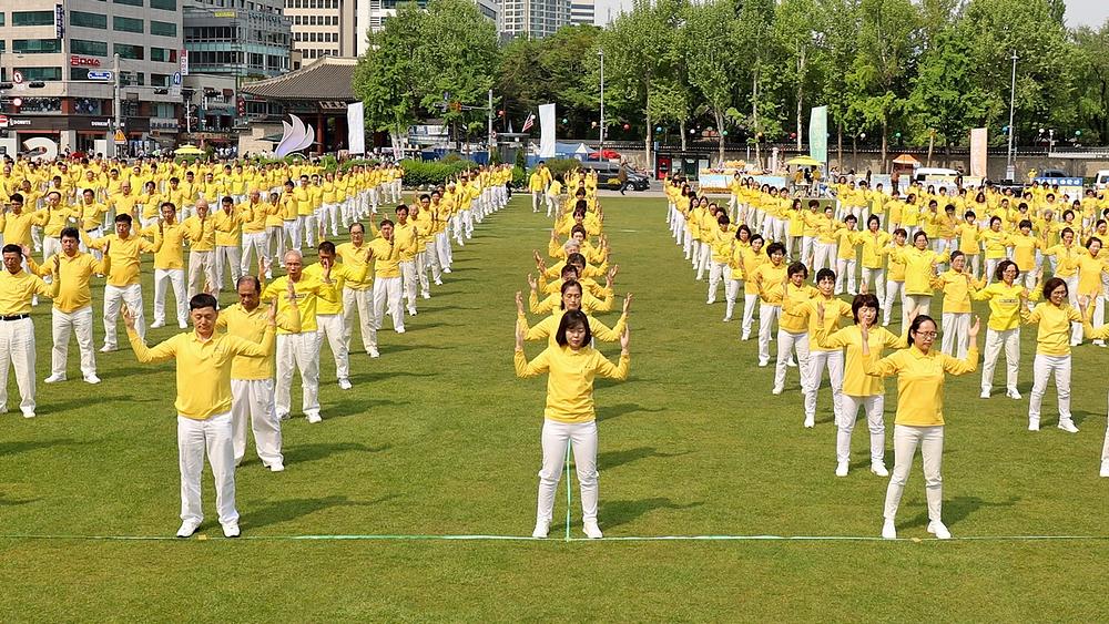 Falun Dafa praktikanti su Svjetski Falun Dafa dan u Južnoj Koreji proslavili 12. maja 2019. godine na trgu Seoul Plaza. Oko 1.000 praktikanata se okupilo na grupnu meditaciju i na nastupe Tian Guo Marching Banda i dobošarske grupe, nakon čega je uslijedila parada duga pet kilometara.