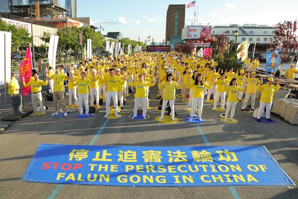 Falun Gong praktikanti okupili su se ispred kineskog konzulata 16. svibnja 2019. godine, kako bi prosvjedovali protiv progona prakse, koju provodi Komunistička partija Kine (KPK). Otišli su tamo, nakon završetka velike parade na Manhattanu, slaveći Svjetski Falun Dafa dan.