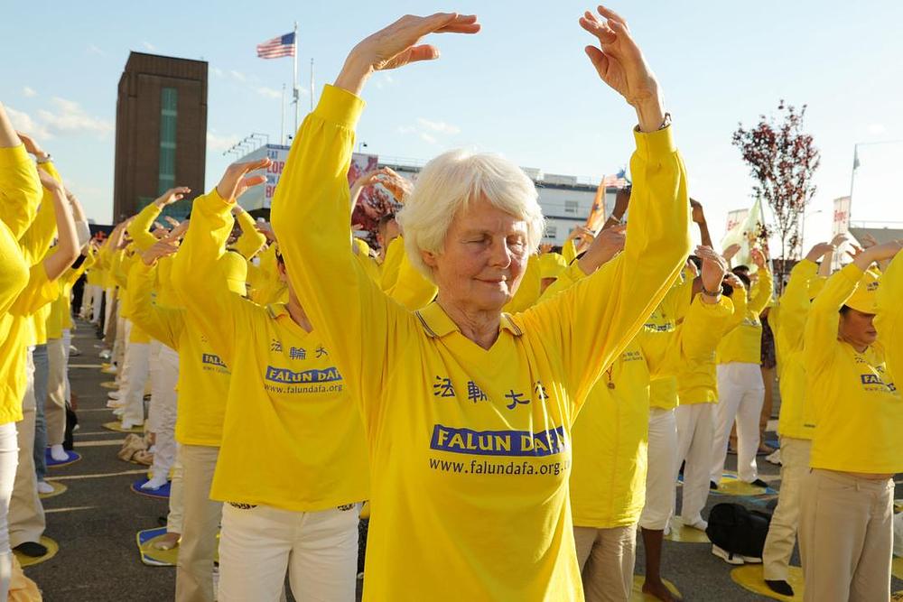 Skup je započeo u 16:30 sati. Praktikanti su nosili žute majice i poredali se uz rijeku Hudson. Držali su vertikalne transparente s riječima "Zaustavite progon Falun Gong-a" i "Dovedite Jiang Zemin-a pravdi" na engleskom i kineskom jeziku.