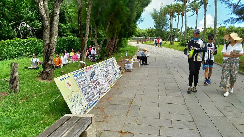 Praktikanti dijele Falun Gong letke u parku Eluanbi unutar nacionalnog parka Kenting, sad već blizu dvije decenije. Oni tu javnosti predstavljaju ovu praksu meditacije i rade na podizanju svijest o progonu u Kini koji neprekidno traje od 1999. godine.