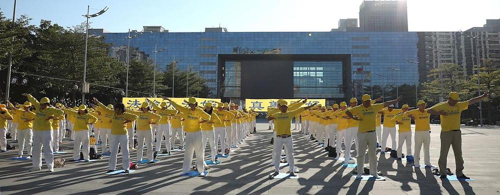 Praktikanti iz Taichunga su se ovog mjeseca,14. decembra 2019, okupili na Trgu ispred glavne vijećnice i demonstrirali izvođenje vježbi. Snimili su i grupnu fotografiju kako bi učitelju Li Hongzhiju, osnivaču Falun Gonga, poželjeli sretnu Novu godinu.