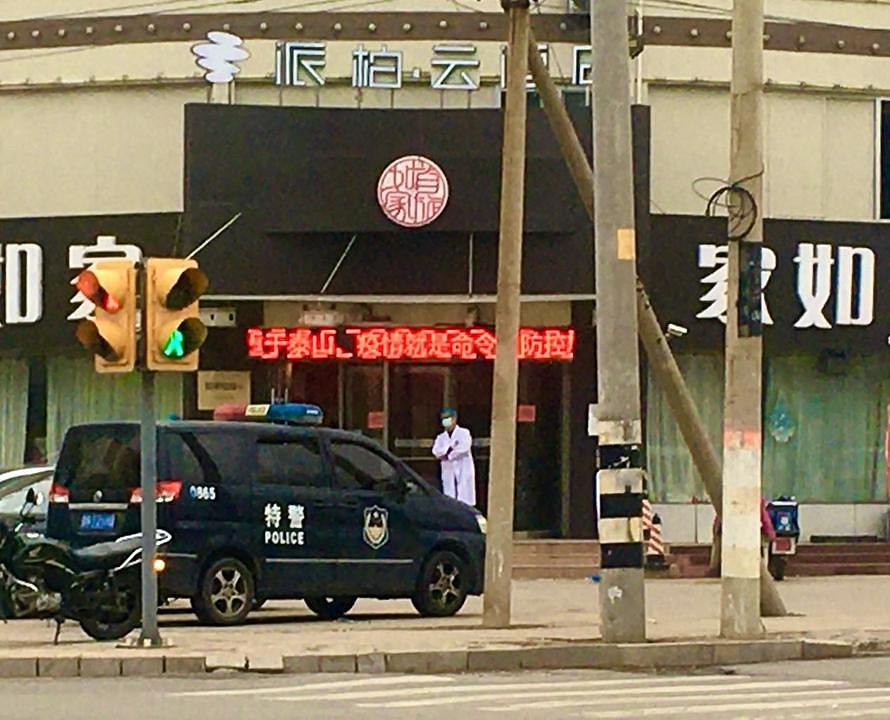 Na donjim fotografijama ispred hotela „Paibaiyun“ vidi se policijski automobil koji je dežurao 24 sata, a povremeno su viđeni ljudi kako dezinficiraju ulaz u hotel.