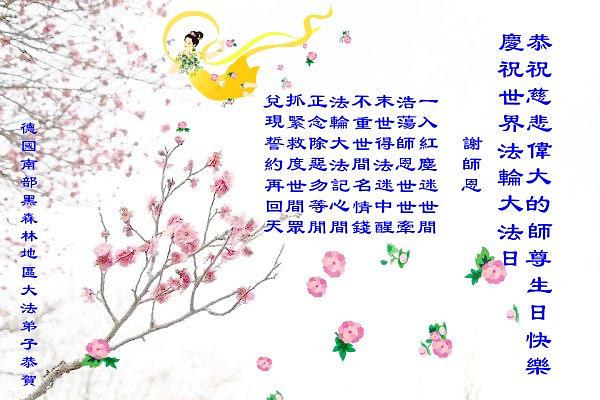 Praktikanti iz UK, Francuske, Irske, Holandije, Nemačke, Belgije, Austrije i Švajcarske obeležavaju Svetski Dan Falun Dafe i 28. godišnjicu javnog predstavljanja Falun Dafe. Oni s poštovanjem žele cenjenom Učitelju srećan rođendan! Čestitke dolaze iz sledećih mesta: