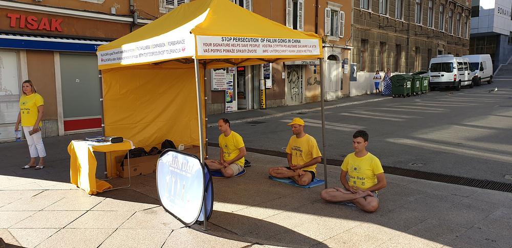 Falun Dafa praktikanti iz Hrvatske i Slovenije održali su 8. srpnja 2020. godine predstavljanje Falun Dafa (naziva se i Falun Gong) u Rijeci, primorskom gradu na sjevernom Jadranu. Događaj je održan u centru grada, na popularnoj šetnici Korzo. Praktikanti su postavili šator i stol s informativnim materijalima, posterima, letcima i Falun Dafa knjigama. Polovica praktikanata je izvodila vježbe, dok je druga polovica dijelila letke i objašnjavala zainteresiranim prolaznicima što je Falun Dafa, odakle potječe, zašto je progonjen u Kini te je informirala ljude o tekućoj žetvi organa od živih Falun Dafa praktikanata u Kini.