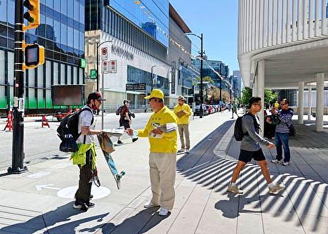 Falun Gong praktikanti iz Vancouvera su se 12. jula okupili na platou ispred Umjetničke galerije u Vancouveru, radi grupnog izvođenja vježbi i podizanja svijesti o dvadesetjednogodišnjem progonu u matici Kini.