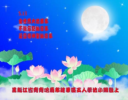 Praktikanti iz sljedećih distrikta u gradu Qiqiharu, u provinciji Heilongjiang slave Svjetski Falun Dafa dan i 21. obljetnicu predstavljanja Falun Dafa u javnosti! S poštovanjem žele milostivom velikom Učitelju sretan rođendan!