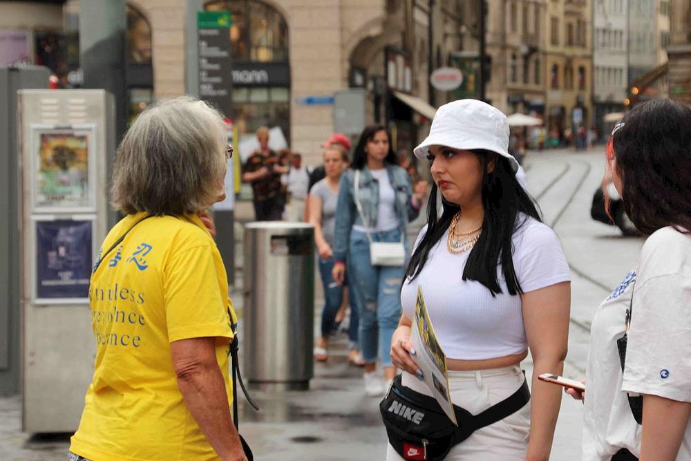 Neki su ljudi u Cirihu već ranije je čuli za Falun Dafa i pitali mogu li potpisati peticiju. Jedan je turist iz Poljske rekao da često putuje u Hong Kong radi posla i da već zna za zločine koje je počinio kineski režim. Svom je prijatelju već o tome govorio i zatim su slušali praktikanta dok im je iznosio dalje detalje o progonu.