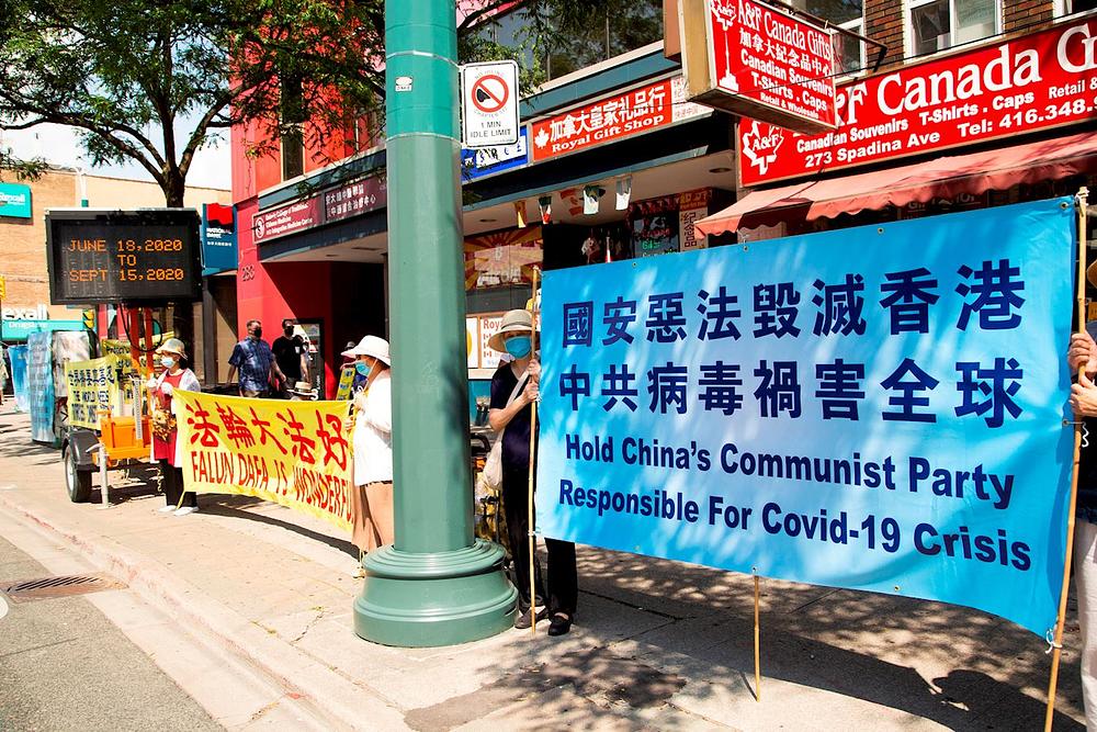Skup i automobilska parada su održani u centru grada Calgaryja 22. avgusta. Nakon završetka skupa, kolona od oko 20 automobila, s porukama, "Nebo će uništiti KPK", "KPK je najgori zli virus koji ugrožava cio svijet", i "Ljudi umiru zbog toga što je KPK lagala o virusu” je kružila gradom, krećući se od kineske četvrti, a zatim idući ka kineskom supermarketa T&T u sjeveroistočnom okrugu. Parada je trajala gotovo dva sata.