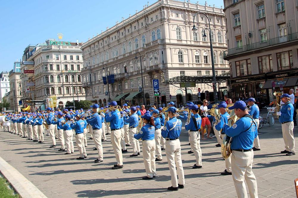 Falun Dafa praktikanti su, 12. septembra 2020. godine, održali skup na trgu ispred državne opere u Beču da bi ljude upoznali sa ovom duhovnom praksom i njenim progonom od strane Komunističke partije Kine (KPK). Nakon skupa uslijedila je parada koju su predvodili Tian Guo Marching Band, Zlatni zmaj i dobošarska grupa. Parada je bila po prvi put održana u Beču nakon što se pandemija koronavirusa proširila Europom.