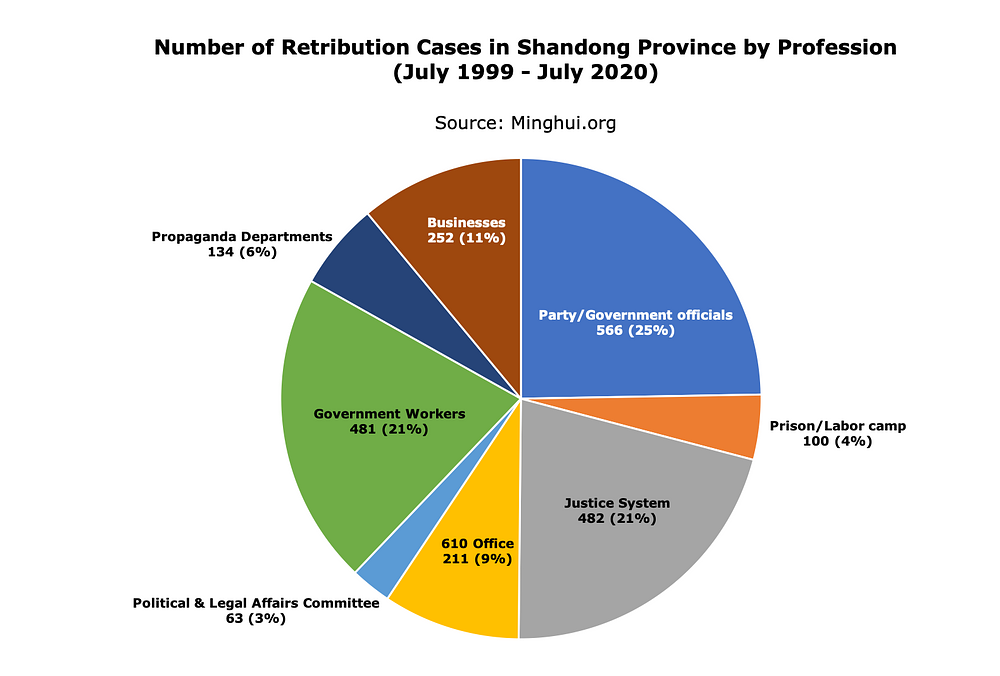 Podaci koje je prikupio Minghui pokazuju da se 2.289 osoba u provinciji Shandong koje su bile uključene u progon Falun Gonga suočilo s različitim oblicima posljedica od jula mjeseca 1999. godine do jula mjeseca 2020. godine.