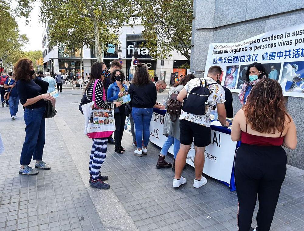 Svake subote Falun Dafa praktikanti održavaju aktivnosti u centru Barcelone kako bi ljudima predstavili ovu praksu meditacije i ljudima objasnili aktuelni progon ove prakse u Kini. Iako Španija ima najveći broj slučajeva koronavirusa na svijetu, praktikanti i dalje nastavljaju ljudima objašnjavati istinu i prikupljati potpise na peticiji kojom se traži okončanje progona.