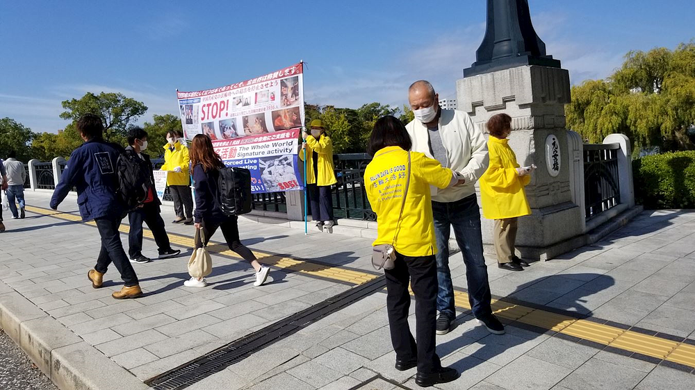 Falun Dafa praktikanti su u Hirošimi, 1. novembra 2020. godine, organizovali aktivnosti u Memorijalnom parku mira. Prolaznicima su govorili o aktuelnom progonu Falun Dafa prakse u Kini, koji traje već 21 godinu. Ovom prilikom je nekoliko ljudi potpisalo peticiju za pomoć u zaustavljanju ovih zločina.