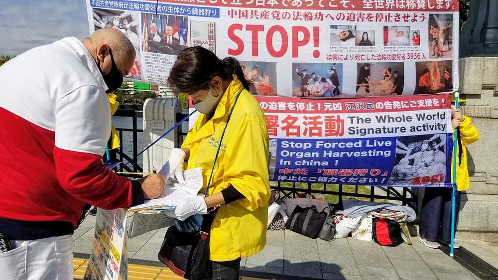 Prolaznik po imenu Tsuzuki je kazao da je već čuo za zlostavljanja kojima su izloženi Falun Dafa praktikanti u Kini, uključujući prisilnu žetvu organa, pa je odmah potpisao peticiju. Rekao je da, iako koronavirus potiče iz Kine, nije vjerovao da bi ga KPK mogla namjerno proširiti.