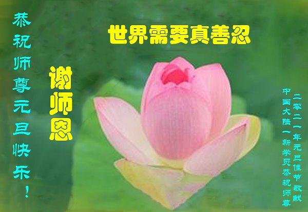 Ispod je kolekcija čestitki primljenih od novih praktikanta u Кini. One dolaze iz provincija Jilin, Sečuan, Hebei, Jiangki, Heilongjiang, Jiangsu, Liaoning i Iunnan, kao i iz Chongkinga, Pekinga i Šangaja.