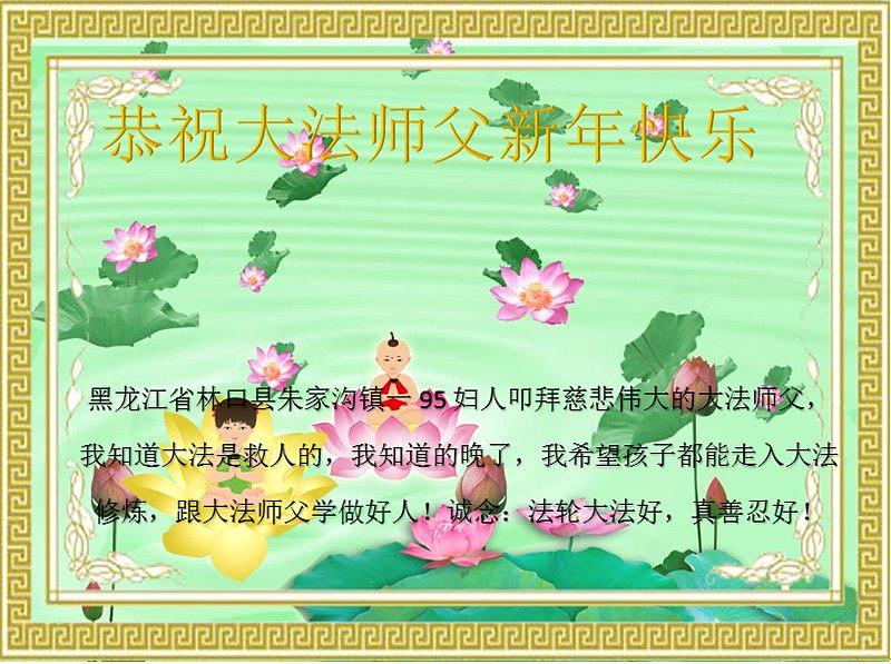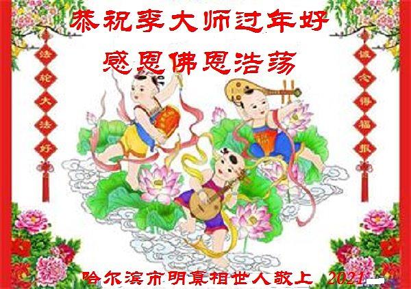 Porodica iz grada Harbin u provinciji Heilongjiang je Učitelju Liju čestitala sretnu Novu godinu. Oni su napisali: „U ovakvim vremenima, dok virus Komunističke Partije Kine (KPK) bjesni i ima mnogo katastrofa, mi se ne plašimo. Vjerujemo da ćete nas zaštititi i iskreno recitujemo: 'Falun Dafa je dobar, Istinitost, Dobrodušnost i tolerancija su dobri'. Ovo je sve u našoj porodici održalo sigurnima i zdravima."
