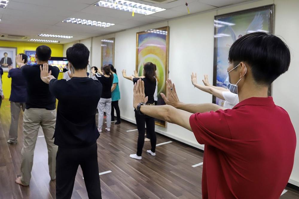 Falun Dafa udruženje iz Singapura je, od 27. februara do 7. marta 2021. godine, održalo devetodnevnu radionicu na kineskom i engleskom jeziku . Tokom radionica učenici su gledali video snimke predavanja gospodina Li Hongzhija i naučili kako se radi pet vježbi. Posljednjeg dana, novi su praktikanti razgovarali o pozitivnim promjenama koje su na sebi uočili nakon učenja prakse.