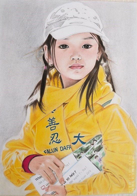Ovaj crtež, nacrtan olovkom u boji i pastelima na A4 formatu papira, nadahnut je fotografijom snimljenom tijekom proslave Svjetskog dana Falun Dafa u New Yorku. Djevojčica se pridružila drugim praktikantima, dijeleći Falun Dafa brošure prolaznicima, nadajući se da će oni saznati o progonu Falun Dafa, koji traje u Kini od srpnja 1999. godine.