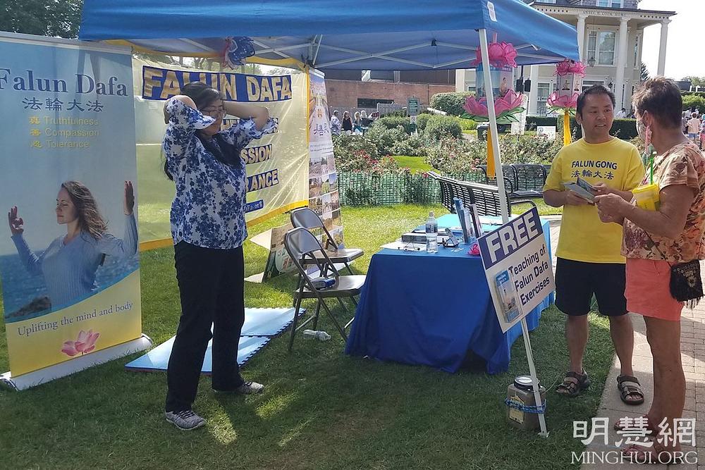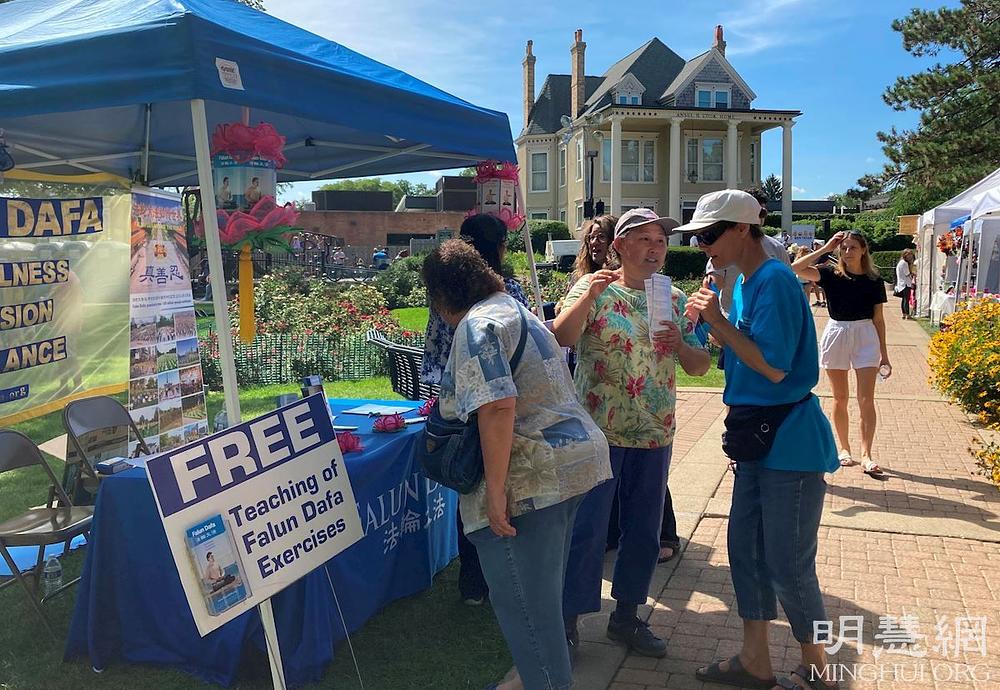 Falun Dafa praktikanti imaju mjesto za grupno prakticiranje u Libertyvilleu. Ondje se sastaju nedjeljom da bi radili vježbe, a nude i besplatne instrukcije svima koji žele učiti. Tokom festivala, mnogi prolaznici su rekli da već znaju za lokalno mjesto za prakticiranje jer su ranije vidjeli praktikante kako tamo vježbaju.