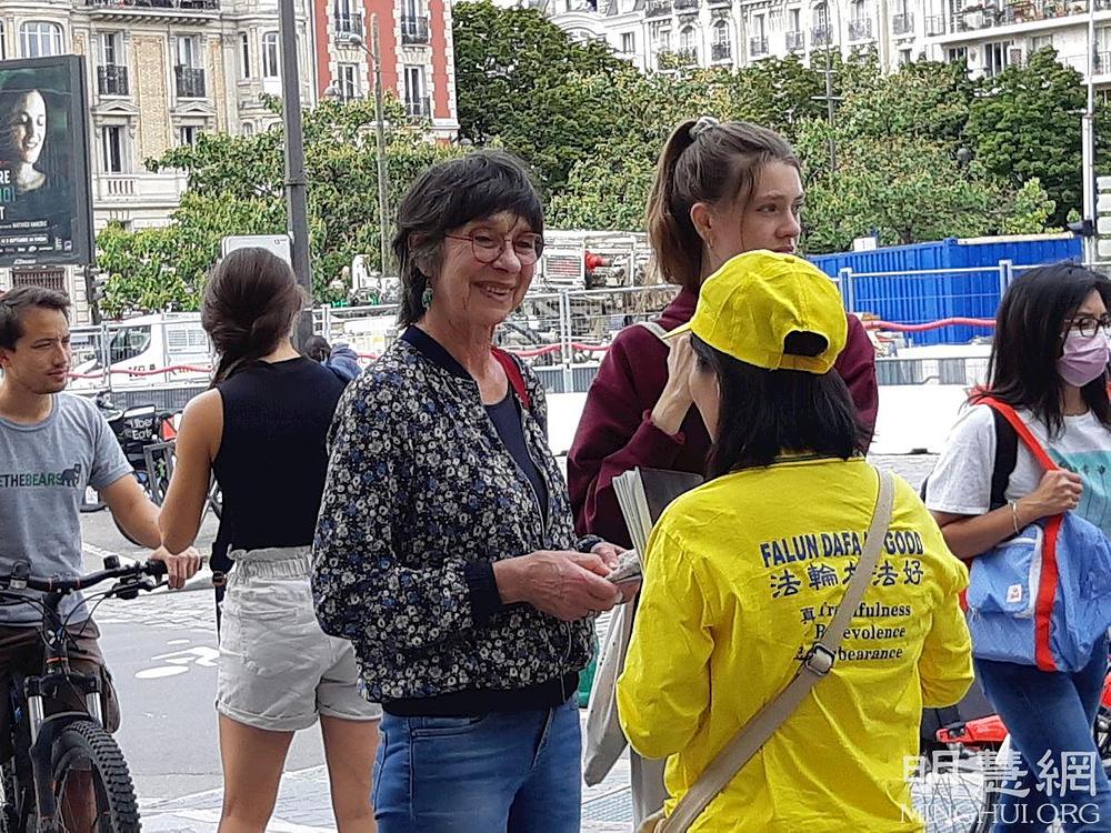 "Nevjerovatni ste!" - kazao je gospodin Zhang držeći podignute palčeve. Porijeklom iz Kine, gospodin Zhang sada živi u Francuskoj već nekoliko decenija i često gleda televizijske programe NTD. "Znam za progon", rekao je. Pohvalio je praktikante za njihov miroljubivi otpor i rekao: "Znam da se slične parade održavaju širom svijeta."
