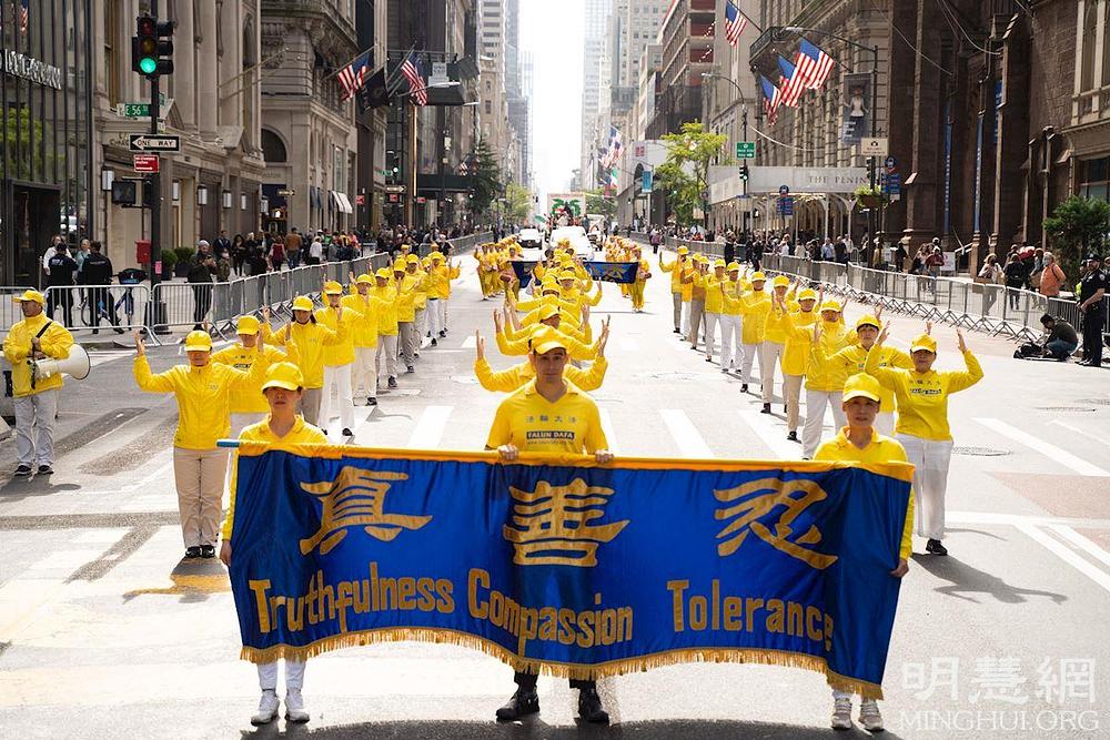 U sklopu parade nastupali su orkestri, izvođači na pokretnim binama i stotinu grupa koja su marširale od 44. ulice do 72. ulice. Falun Dafa praktikanti su sudjelovali s nekoliko grupa, naime s orkestrom Tian Guo, s grupom barjaktara, s grupom koja je demonstrirala vježbe i s grupom dobošara. Gledatelji su bili duboko impresionirani šarenim bojama i lijepom glazbom koji su pratili praktikante i pljeskom su im pokazivali podršku.