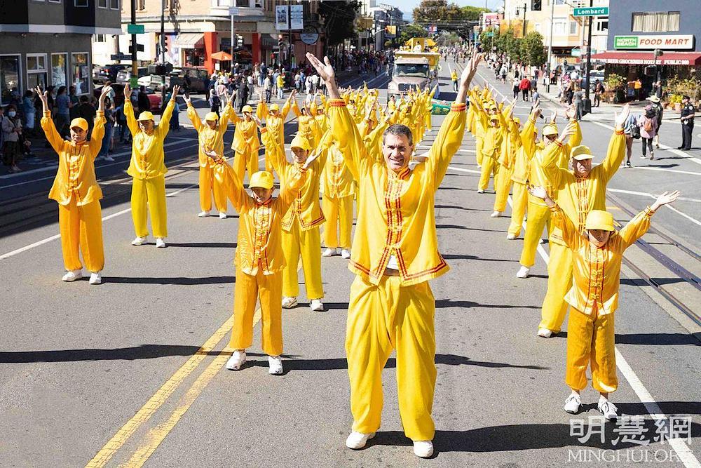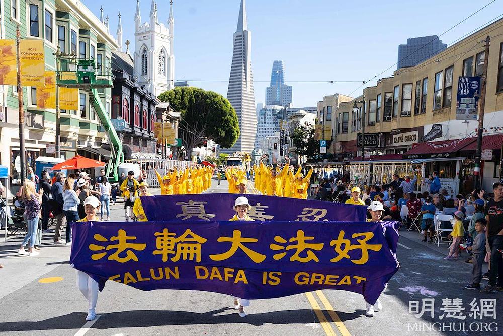U San Franciscu je 10. listopada 2021. održana godišnja parada na Dan Kolumba. Ove godine naziv povorke promijenjen je u Parada talijanske baštine. Praktikanti iz sjeverne Kalifornije prisustvovali su s Tian Guo Marching Band, timom za vježbanje i plovkom. Srdačno su ih dočekali organizatori i ostali sudionici parade. Prvu nagradu osvojio je plovak praktikanata, drugu nagradu osvojio je Tian Guo Marching Band, a slijedio ga je tim za vježbanje. Lokalni stanovnici rekli su praktikantima: „Mi volimo Falun Dafa.“