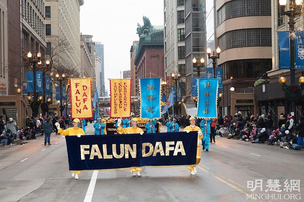 Od 2003. godine, Falun Gong praktikanti su prisustvovali gotovo svakoj Paradi zahvalnosti u Chicagu. Voditelj je dvije minute potrošio da prikaže praksu na ovogodišnjoj paradi. Falun Dafa procesiju je opisao kao „spektakularnu“. Također je pohvalio glazbu praktikanata. Zaključio je riječima: „Svijetu su potrebni Istinitost, Suosjećanje, Strpljivost!“