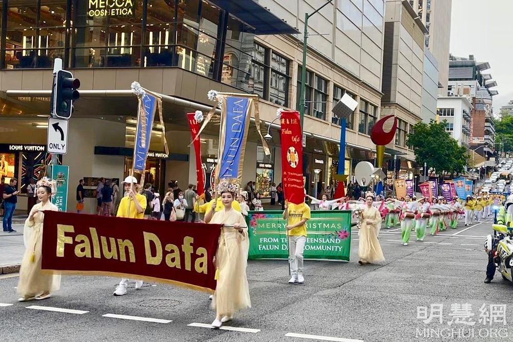 Falun Gong praktikanti u Brisbaneu održali su božićnu paradu 17. prosinca 2021. Uz raznobojne kostime i odjek bubnjeva, parada je fascinirala gledatelje i širila pozitivnu energiju, nadu i blagoslove lokalnim stanovnicima.